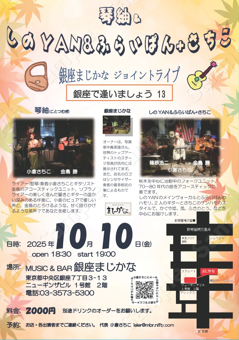 銀座まじかな10月10日(金)19:00〜